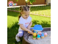 Оригінальні та цікаві «Набори для гри з піском ТехноК» принесуть багато радості та захопливих ігор Вашим малюкам. Це велике відро зі «смачною» наліпкою, ексклюзивне прозоре сито у формі пудингу, 4 формочки для піску, що схожі на кекси з вершками та ложка. Повірте, з цією іграшкою, дитині точно буде чим зайнятися: рольові ігри типу «кафе» чи «магазин», ліплення з піску іграшкових «кексів», багато інших цікавих ігор чекають на щасливих власників цього набору. Використовувати іграшку можна як на пляжі, так і в пісочниці поруч із будинком, в дитячому садку, тощо.