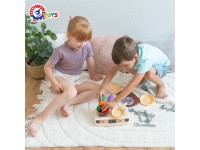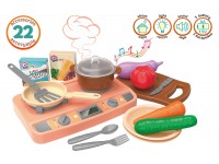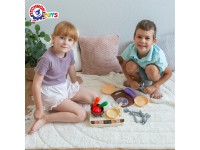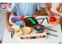 Комплектація: варочна панель з електронним модулем, дощечка, каструля з кришкою, сковорідка, ложка - 2 шт., виделка - 2 шт., ніж - 2 шт., тарілка - 2 шт., виделка велика, шумівка, лопатка, черпак, огірок, морква, баклажан, помідор, коробочка - 2 шт.