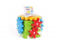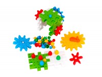 З пластин білого та салатового кольорів складається куб або плита, на які фіксуються шестерні з допомогою спеціальних кріплень. Якщо зібрати шестерні у правильному порядку, вся конструкція, ніби "оживає" під час обертання. А фішки мозаїки додають різноманіття та кольорів. Варіантів складання конструктора – безліч, адже пластини як пазли і їх можна збирати у різній послідовності.