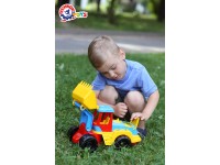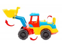 Особливість нового трактора -рухоме (шарнірне) з'єднання кабіни та ківша. Це дає можливість трактору працювати не тільки у кар'єрах, а також на невеликих будівельних площадках. Великі міцні колеса дозволяють машині долати різноманітні перешкоди. У комфортній відкритій кабіні зручно розміститься улюблена іграшка. Кришка моторного відділу відкривається і малюк зможе оглянути двигун та вчасно провести обслуговування або ремонт.
