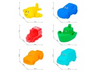 "Набір для ванної ТехноК" – це кольорові іграшки для купання із захопливого світу транспорту. Тут швидкісний спорткар, місткий автобус, маневровий літачок, потужний пікап, великий паротяг та веселий кораблик. Надруковані оченятаметодом тамподруку додають іграшкам радісних емоцій та краси, з ними машинки ніби оживають. Транспорт добре тримається на воді, що дає можливість дітлахам придумувати різноманітні ігри. З ними також цікаво гратися і "на суші" – влаштувати перегони, відкрити автосервіс, припаркувати машинки у гаражі, а літак в ангарі та багато-багато інших.