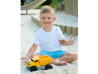 Іграшковий самоскид- це іграшка у вигляді мініатюрної версії вантажівки з відкидним кузовом. Він доступний в трьох кольорах - червоному, жовтому та зеленому. Дизайн будівельної техніки дуже реалістичний з чіткими лініями.