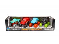 Комплект з чотирьох захоплюючих іграшкових міні траків ТехноК – маленьких велетнів, що прагнуть до перемоги з усієї сили! Міні траки ТехноК – це яскравий емоційний карнавал на колесах, який запрошує у світ радості та неймовірних пригод.