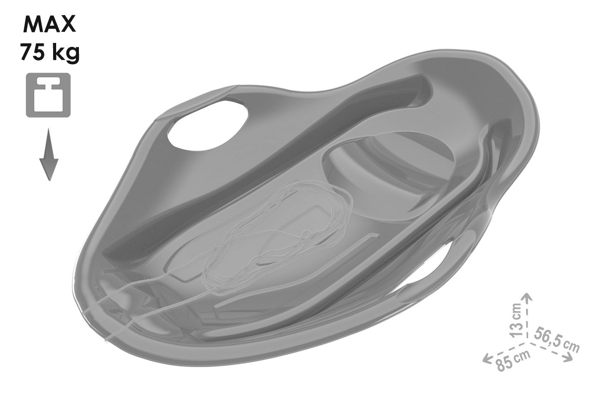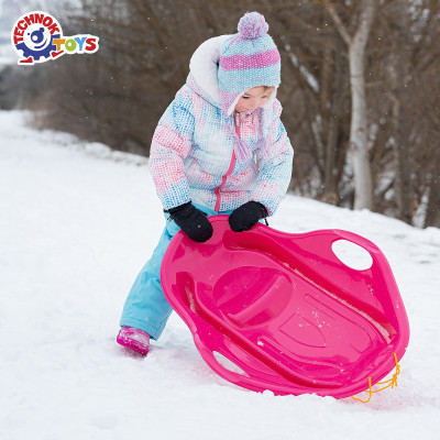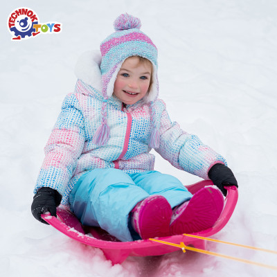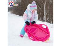 "Сани-льодянка ТехноК" вражають аеродинамічною формою, яка забезпечує швидкий розгін, а бокові ручки дозволять триматися та зручно керувати. Сани легко тягти на гірку - для цього вони мають спеціальну міцну мотузку. Мама теж зможе взяти участь в змаганнях, оскільки максимальне навантаження - 75 кг. Гладка поверхня виробу забезпечує стрімкий спуск.