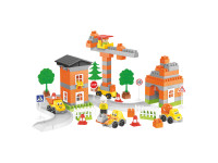 Великий набір складається зі 170 елементів: будівельні блоки, траса, дорожні знаки, дерева, огорожа, наліпки, різні деталі для створення великих будівель та спеціальна будівельна техніка.