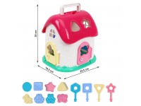 Для зручності перенесення будиночок має висувну ручку на даху будиночка. Це дозволяє завжди брати улюблену іграшку з собою. Будиночок великий і місткий, тому його можна використовувати як гараж для автомобілів або замок для ляльок. Фігурки тварин та геометричні формочки можна застосовувати для гри з водою чи піском.