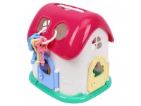 Будиночок ТехноК, арт. 6740 – це велика хатинка-сортер з 4-ма дверима під ніжним рожевим дахом і з білими рельєфними стінами. А знизу – красива зелененька основа, схожа на газон.