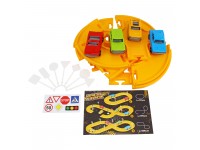 У наборі: дорожні знаки – 7 шт. і основа дорожніх знаків – 2 шт., наліпки на знаки, кольорові автомобілі – 4 шт., елементи треку – 26 шт., та кольорова інструкція.