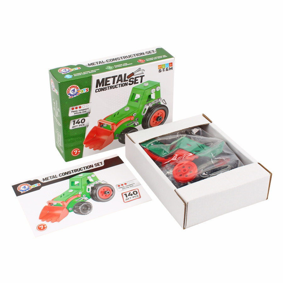"Конструктор металевий ТехноК" арт.1799 – це можливість створити власну реалістичну модель трактора. У наборі ви знайдете 140 деталей, виготовлених з міцного металу та яскравого пластику. Детальна кольорова інструкція допоможе крок за кроком зібрати потужний трактор з рухомим ковшем.