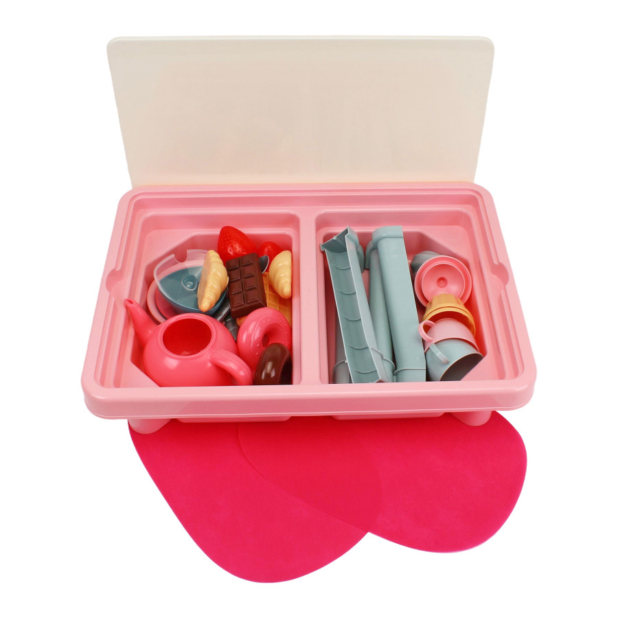 Погляньте на це багатство! Зручний та стійкий столик з чотирма ніжками та двома нішами для зберігання – ідеальна основа для будь-якого свята. А на ньому... справжня казка! Рожевий чайник, ніжні чашечки з блюдцями, елегантні ложечки. Але що за чаювання без смаколиків? У наборі на вас чекають апетитні круасани, повітряні тістечка, апетитний шоколад і навіть солодкі ріжки-морозиво! Загалом, 26 аксесуарів, кожен з яких – це маленький шедевр, готовий до того, щоб прикрасити ігровий стіл. Яскрава скатертина додає святковості, а красива коробка з ручкою робить набір чудовим подарунком. Іграшка від ТехноК – це якість, безпека та безмежний простір для творчих ігор, що розвивають емоційний інтелект.