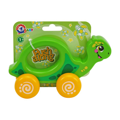 Іграшка має веселе "личко" та яскраві але не "кричучі" кольори, що приваблюють увагу та викликають симпатію. Великі, стійкі колеса забезпечують легке пересування по будь-якій поверхні, дозволяючи дитині гратися як вдома, так і на вулиці. Виготовлена з безпечного та міцного пластику, вона абсолютно безпечна для дітей від 1 року. У виробництві застосовуються сучасні технології УФ-друку та ультразвукового зварювання, що гарантує високу якість і довговічність.