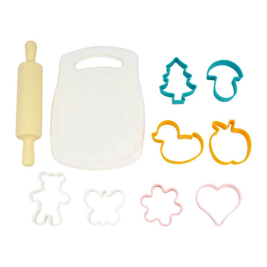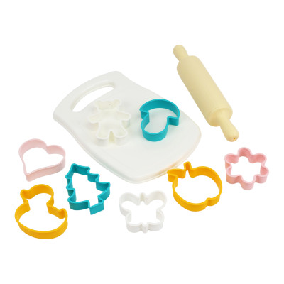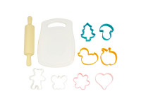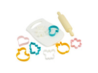 Набір «Кухар» (Домашня пекарня): Ідеальний для розвитку дрібної моторики та підготовки до кулінарних звершень. Містить качалку для "розкачування тіста", білу обробну дошку та, найцікавіше, 7 різнокольорових формочок для печива у вигляді симпатичних звірят та фігур (сердечко, ведмедик, яблуко, гриб, метелик та ін.).