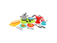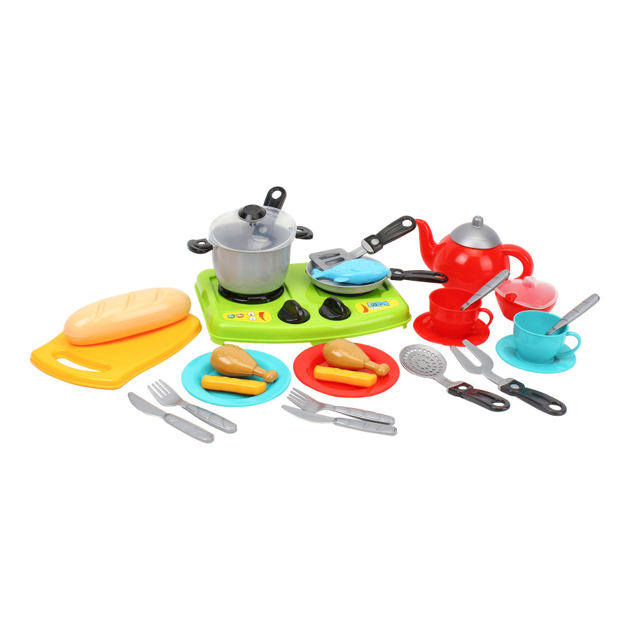 У наборі 31 аксесуар, серед яких: каструля з прозорою кришкою, сковорідка, чайник для затишних чаювань, цукорниця та столові прибори. Особливий акцент — реалістична батоноподібна булочка, рибка та курячі ніжки, що роблять гру максимально правдоподібною.